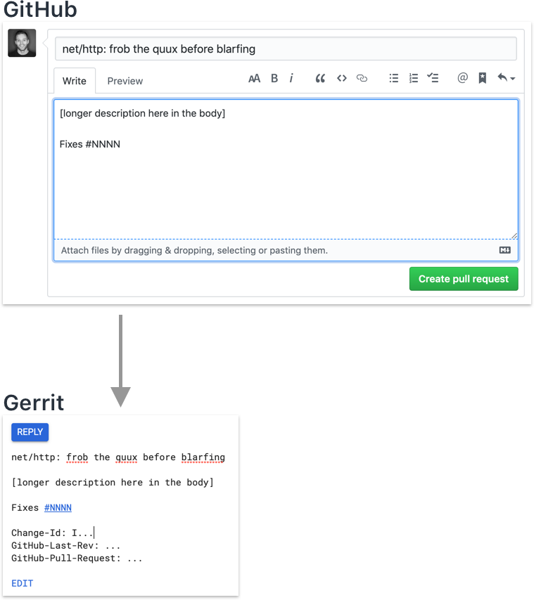 For non-“go” repos (“crypto”, “tools”, “net”, etc), the subject is still the name of the package, but you need to fully-qualify the issue number with the GitHub org/repo syntax: